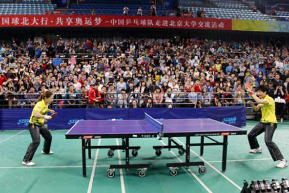 1952年,中华人民共和国第一届全国乒乓球锦标赛在北京大学举行;1996年,首届CCTV杯中国乒乓球擂台赛在北京大学成功举办;2003年10月20日北京大学乒乓球俱乐部挂牌成立;2008年奥运会乒乓球专项场馆,北京大学见证了中国乒乓球队巅峰时刻,三面五星红旗在北京大学体育馆上空同时升起。
