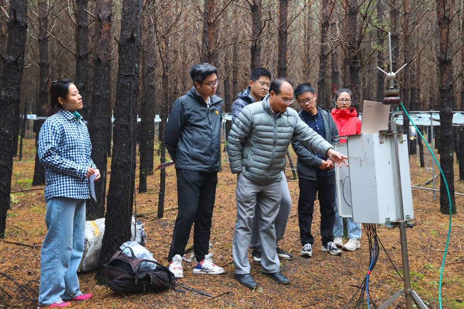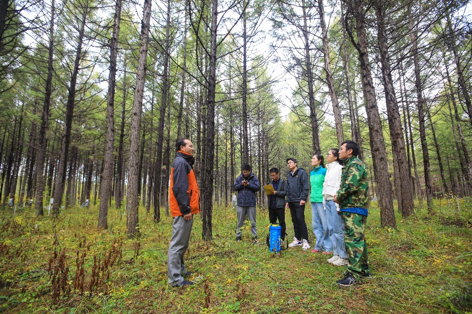 郑成洋讲解“樟子松人工林降水控制实验样地”的数据采集