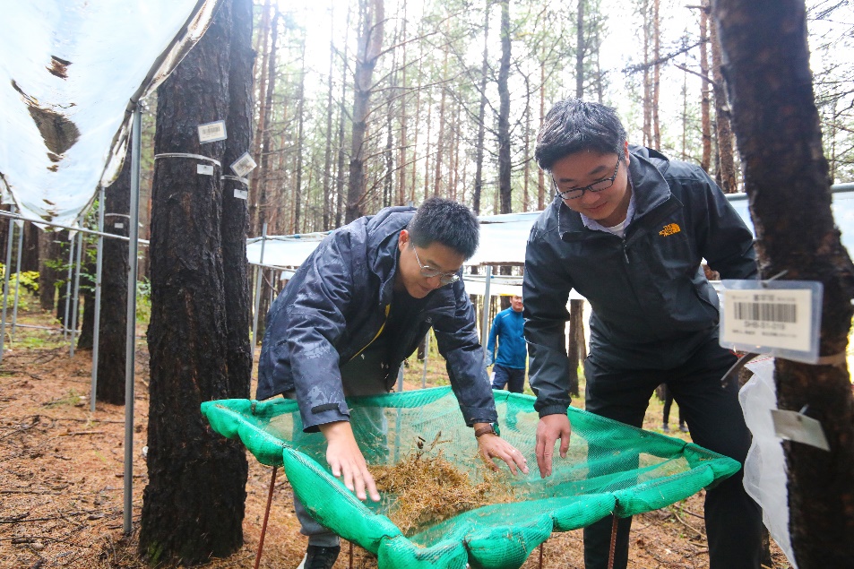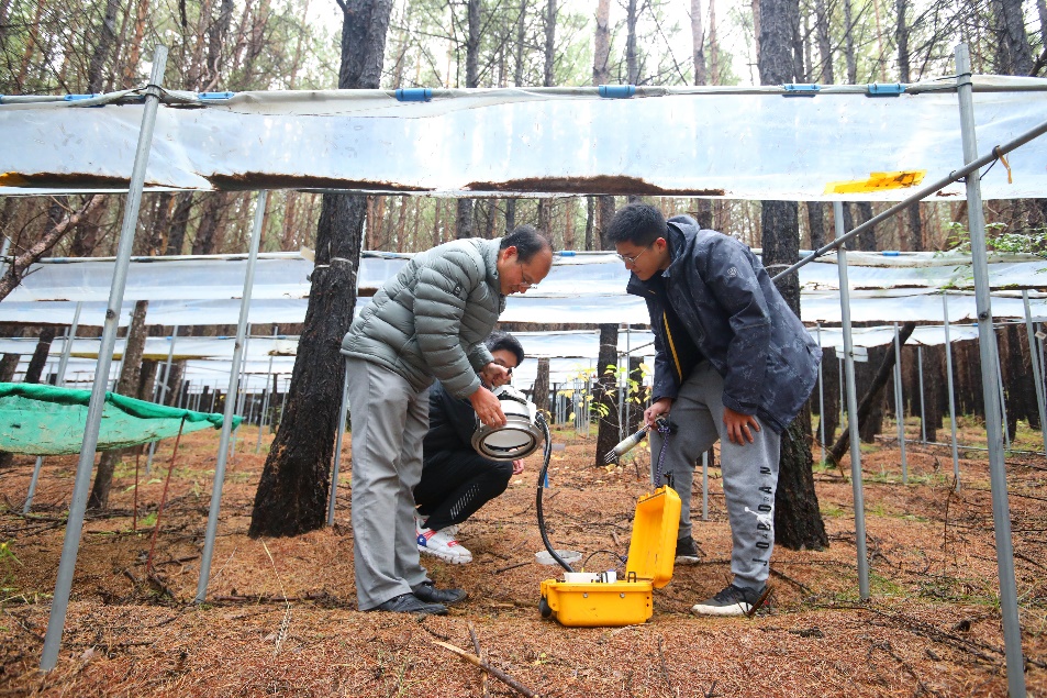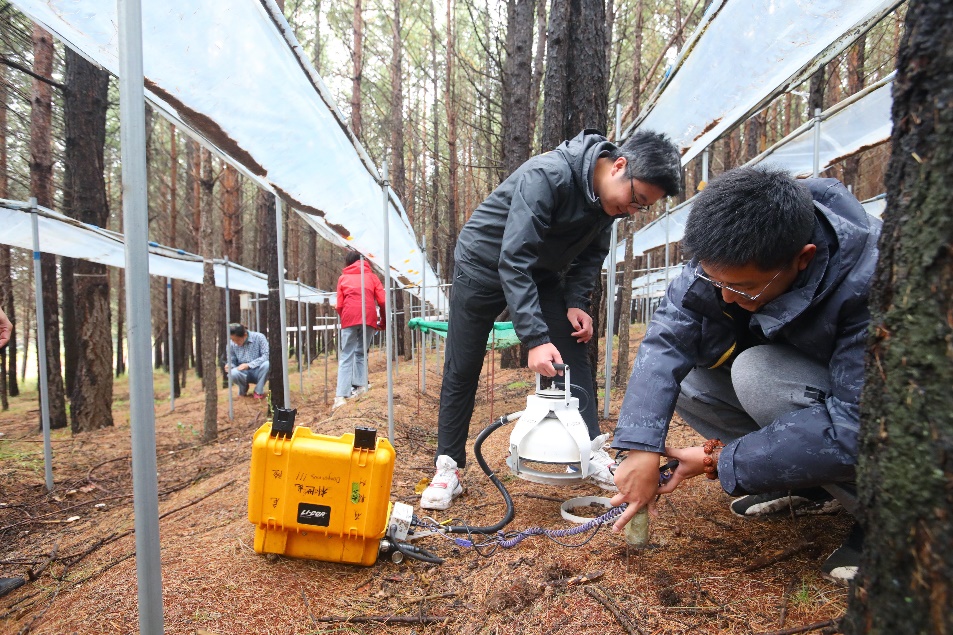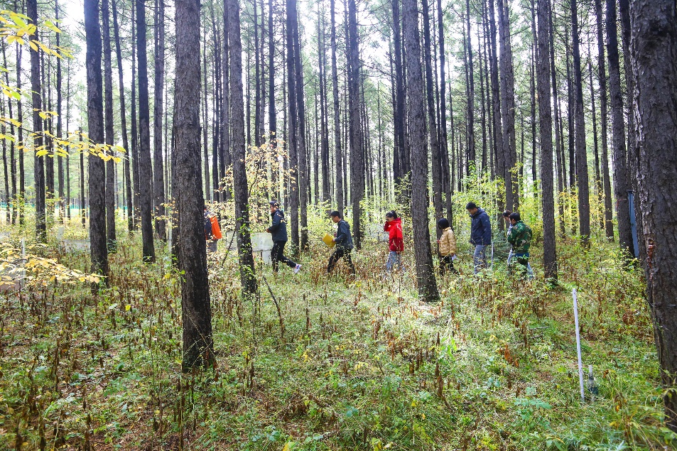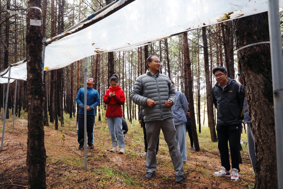 郑成洋讲解“樟子松人工林降水控制实验样地”及实验操作