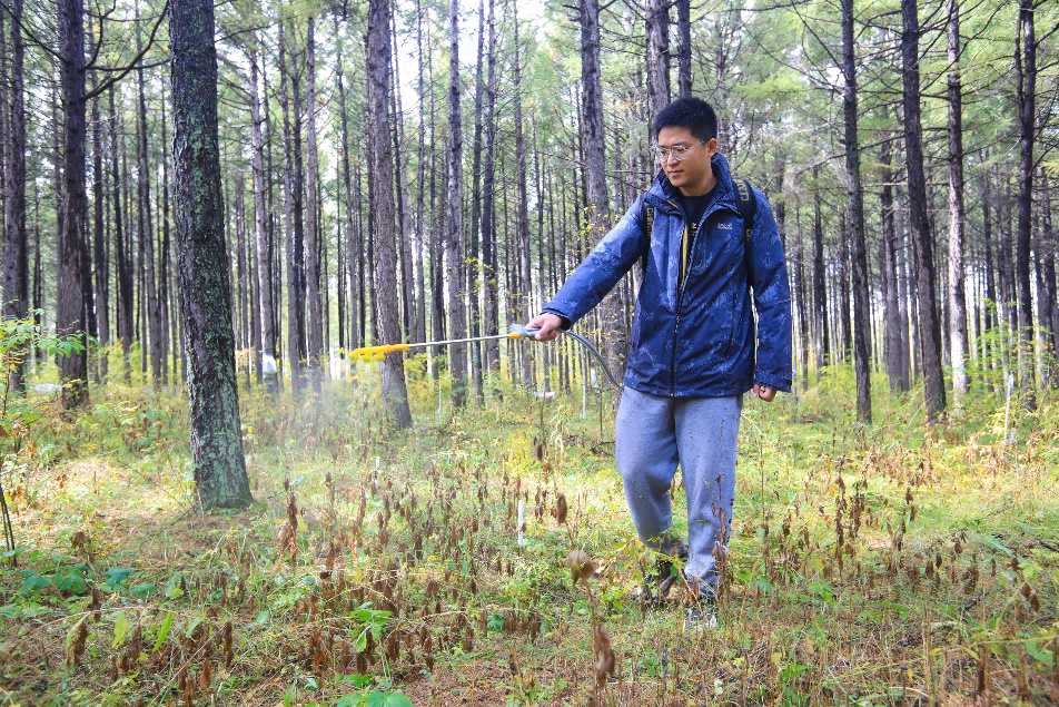 郑成洋讲解“落叶松人工林不同林龄养分添加样地”