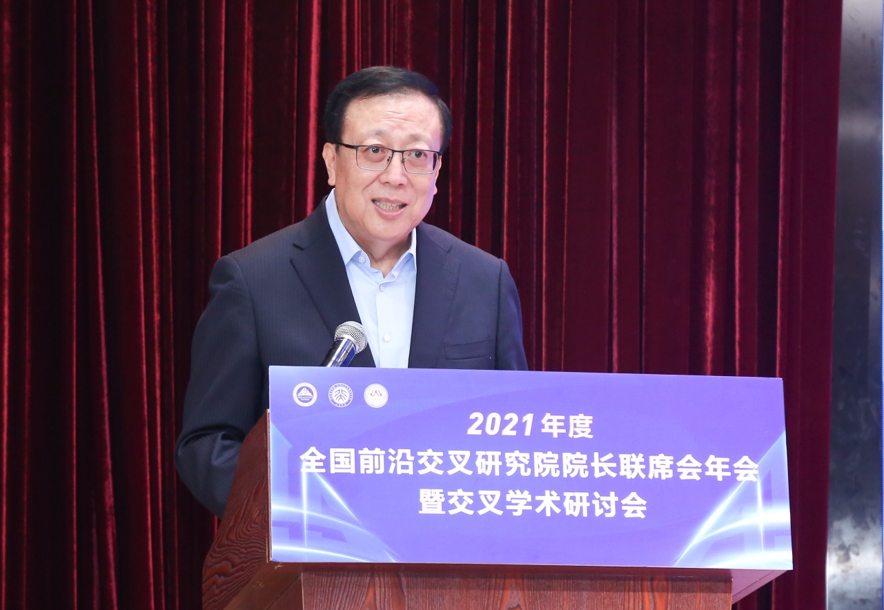 9月25日, 2021年度全国前沿交叉研究院院长联席会年会暨交叉学术研讨会在北大博雅国际会议中心举行。北京大学前沿交叉学科研究院院长、中国科学院院士韩启德,北京大学校长郝平,国家自然科学基金委副主任、中国科学院院士陆建华,中国科学技术大学副校长、中国科学院院士杨金龙,国家自然科学基金委交叉科学部常务副主任陈拥军,教育部学位管理与研究生教育司学位管理处处长栾宗涛等出席会议。