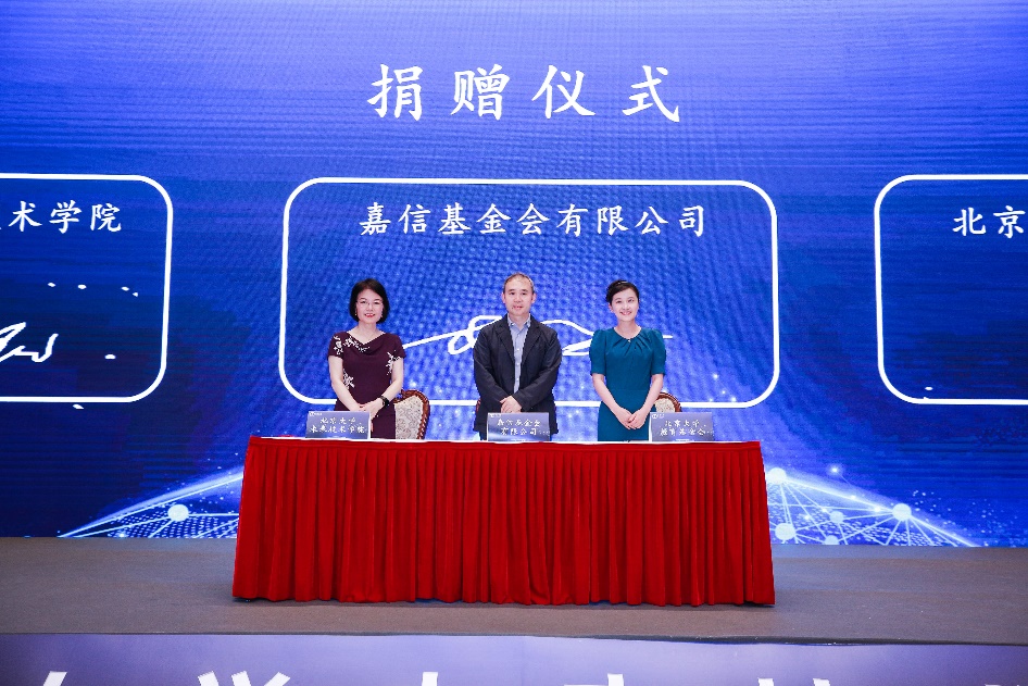 挚信资本创始合伙人、嘉信基金会有限公司董事李曙军,北京大学教育基金会副秘书长耿姝,肖瑞平共同签署捐赠协议。