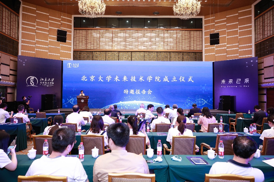 2021年6月22日上午,北京大学未来技术学院成立仪式暨特邀报告会在英杰交流中心阳光厅举行。第十届、十一届全国人大常委会副委员长、十二届全国政协副主席、中国科学技术协会名誉主席韩启德院士,北京大学党委书记邱水平、校长郝平,南京市委常委、江北新区党工委专职副书记罗群,北大常务副校长龚旗煌院士,常务副校长、医学部主任乔杰院士,副校长张平文院士,副校长黄如院士,原常务副校长迟惠生,校长助理、秘书长孙庆伟,中国卫生经济学会会长(中华医学会原党委书记)饶克勤,国务院参事邓小虹、刘远立,兄弟院校的专家学者,学校相关职能部门、院系师生代表,捐赠方和企业界代表出席。成立仪式由黄如主持。