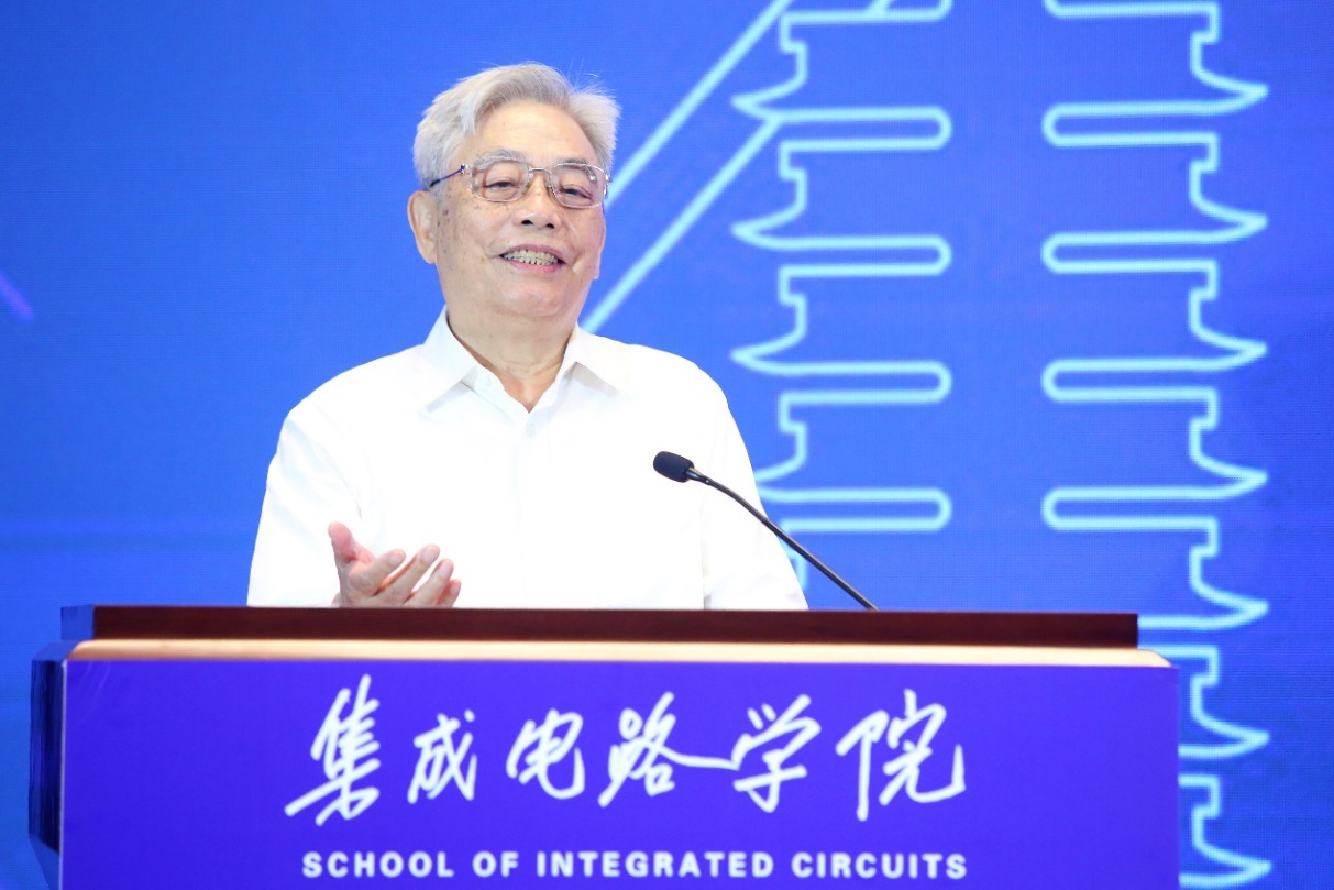 集成电路学院名誉院长王阳元代表学院对与会嘉宾表示感谢。王阳元指出,当前“天时、地利、人和”的条件是我国集成电路发展的最佳时期,集成电路已进入了高速发展期。自力更生、掌握核心技术、解决“卡脖子”问题已成为“从庙堂之高”到“江湖之滨”广泛的共识。北京大学在此之际成立集成电路学院,恰逢其时,是响应国家号召,服务国家战略的重大举措。王阳元对集成电路学院提出期望,认为学院头等大事是抓好人才培养工作,要培养出爱国、奉献、“敢将热血洒春秋”的高素质人才;同时要坚持原始创新,加强基础和应用基础研究工作,并且将我们的原始创新及时地转化到产业中去。王阳元以总书记在庆祝中国共产党成立一百周年纪念大会上的讲话与与会集成电路同仁共勉:“增强做中国人的志气、骨气、底气,不负时代,不负韶华,不负党和人民的殷切期望!”