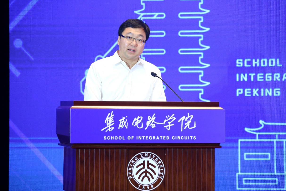 王志军指出,北京大学在百余年的发展历史中肩负国家民族重任,担当时代先锋,几代北大微电子人皆以报国强国为使命,为实现国家民族复兴大业而奋斗不已。他回顾了北大微电子从1956年黄昆先生建立半导体专门化,直至今天推动“集成电路科学与工程”成立一级学科的一路辉煌历程,对北大微电子人迎难而上、勇挑重担的时代担当和爱国热忱表示敬佩。他希望北京大学集成电路学院坚持探索产教融合的新模式,立足自身优势,发扬光荣传统,加快建设步伐,向世界集成电路一流高校迈进。