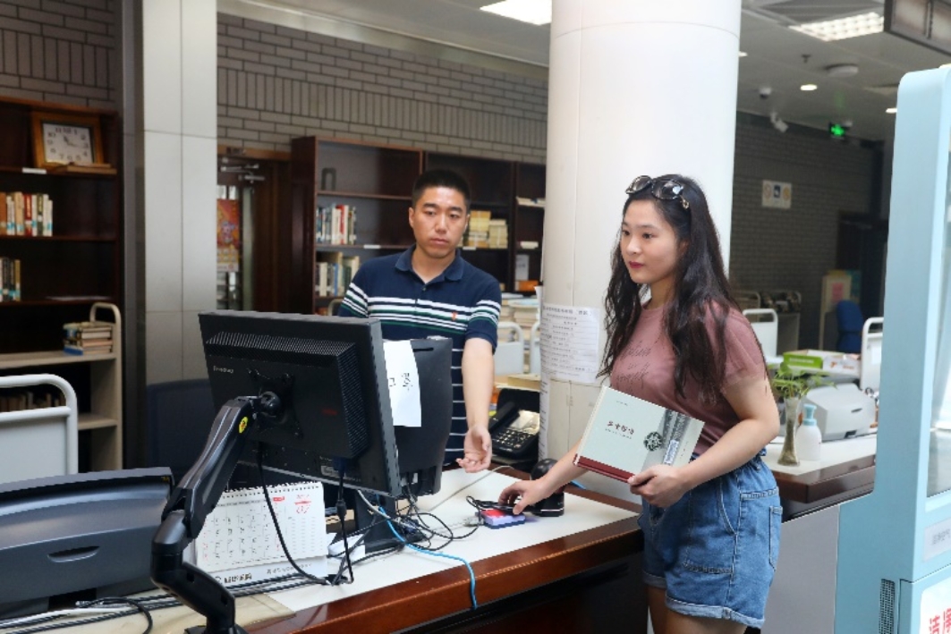 历史学系金璐璇同学正在图书馆用NFC校园卡借书