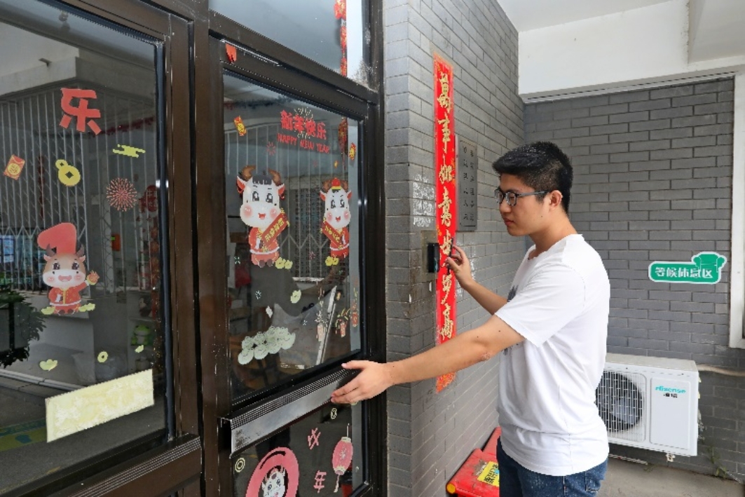 信息科学技术学院罗子渊同学正在用数字校园卡进宿舍