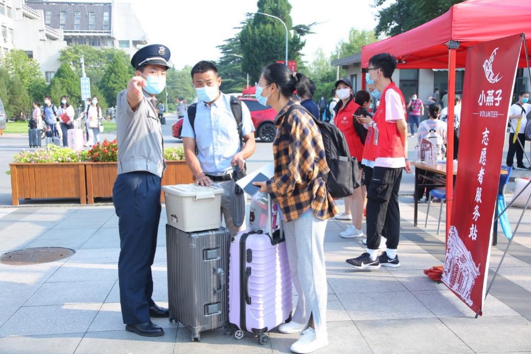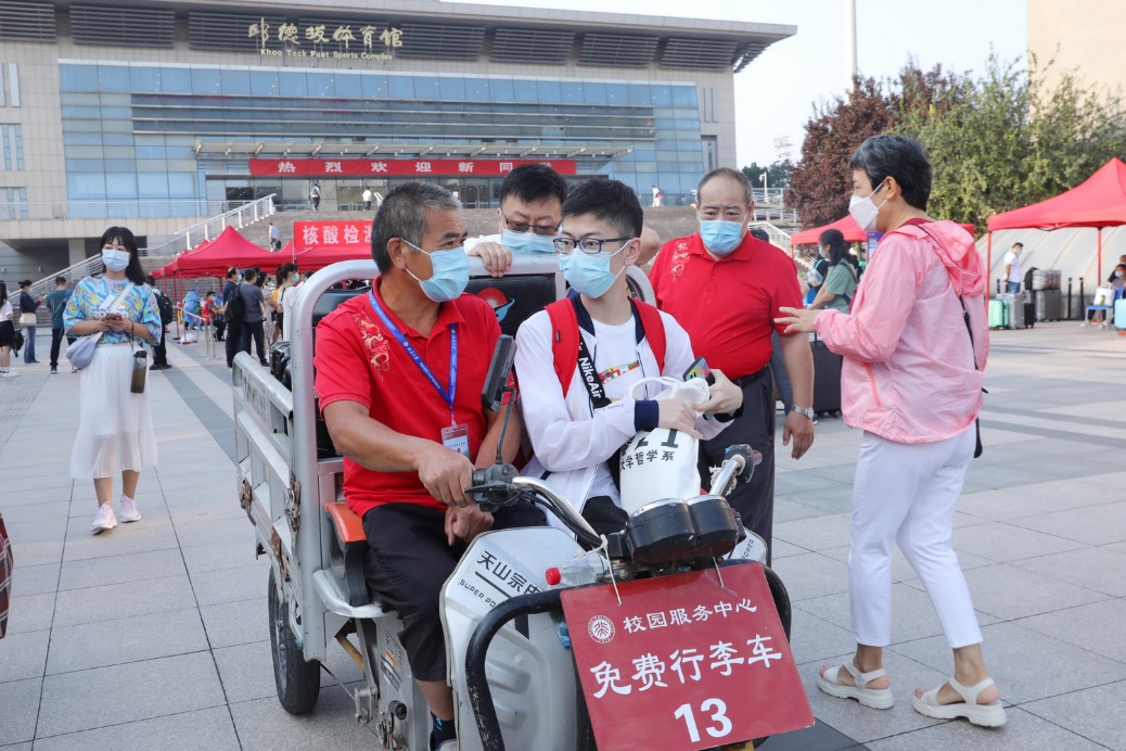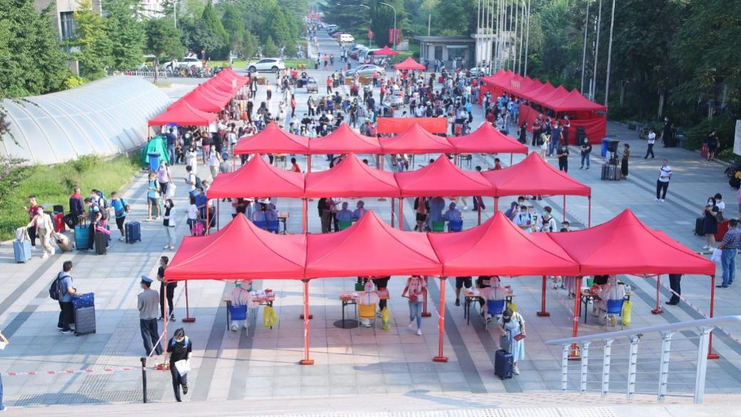 公寓服务中心、餐饮中心等多个部门提前做好了准备,让同学们顺利入住,吃好第一餐;保卫部为新生准备了《大学生安全知识手册》等安全宣传教育材料,为大家的平安生活保驾护航;计算中心在原有报到进展统计、人脸识别的迎新系统基础上,增加了现场拍照存档和信息比对功能,并为每个院系配置专用拍照设备,让新生报到工作更加简洁精准;校园服务中心早早搭起了迎新帐篷,车队也一早等候在火车站的接站处,一列列行李运送车上的师傅们用热情的笑容迎接新生的到来;校医院派出了强大的核酸检测团队,为迎新现场的防疫工作提供保障……迎新工作的高效有序也离不开各职能部门的辛勤付出。