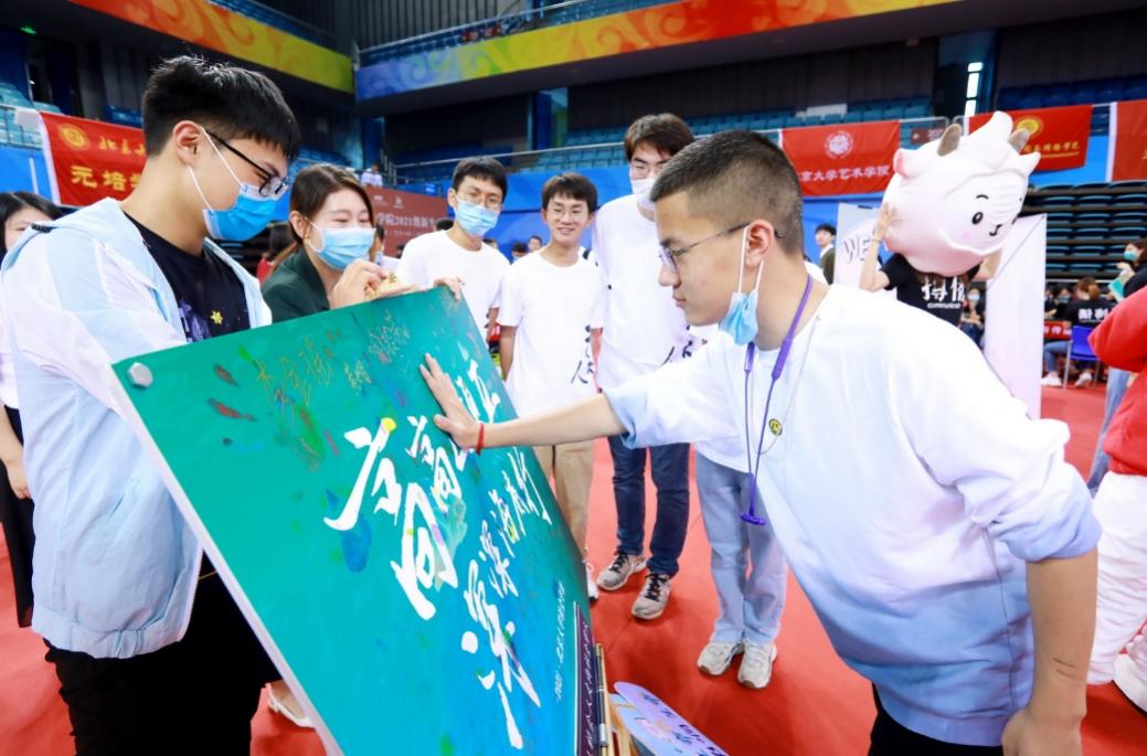 在迎新绿色通道,学生资助中心设立了“建党百年,北大同行”主题展板,还为新生准备了由校史馆林齐模老师编写的《红楼百年话沧桑》一书,让新生从入校时起就开始学习了解北大与中国共产党创建的历史渊源。