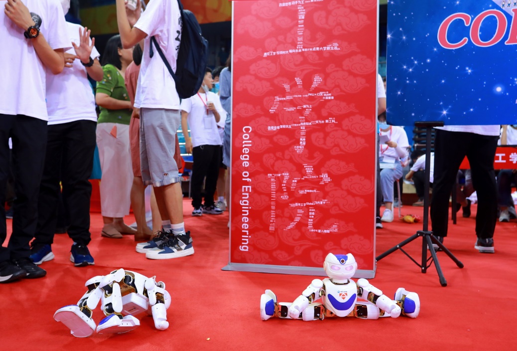 工学院智能仿真设计研究院自主创新研发的机器人来到了迎新现场。根据内置程序的设计,它能够摆出各种高难度的动作,劈叉、翻滚不在话下。科技感满满的造型吸引了众多师生的关注。