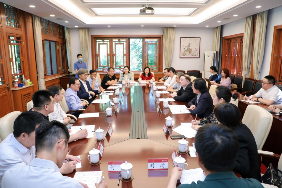 郝平对俞峰一行的来访表示热烈欢迎。他介绍了学校艺术学科建设以及校园艺术活动开展情况。郝平指出,中央音乐学院是全国最高音乐学府,代表中国专业音乐教育的最高水平,培养了一大批优秀的艺术家和音乐教育家,在美育教育和社会服务方面作出了突出贡献。他强调,签署战略合作协议是两校进一步深化合作的重要契机,有利于充分发挥各自资源和平台优势,促进双方相关领域高质量发展。北大将认真落实战略合作协议内容,发挥综合性大学优势,推动相关学科共建,支持中央音乐学院学生来校交流、交换,加强学生通识教育培养,实现更大的合作共赢。