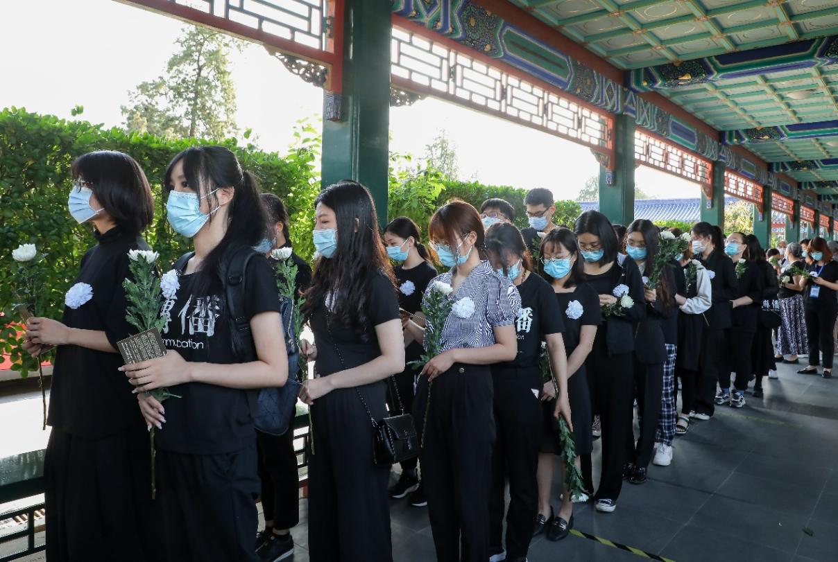 6月22日上午8时,200余名北大师生在低回的哀乐声中走入八宝山殡仪馆礼堂,与许渊冲先生亲友、社会各界人士一道,参加许渊冲先生追悼会,沉痛悼念著名翻译家、北大新闻与传播学院教授许渊冲。李克强、韩正、孙春兰等党和国家领导人敬献了花圈。
