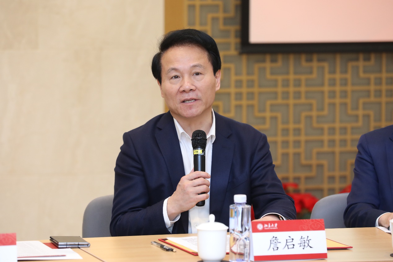 詹启敏表示,北大医学人在战“疫”中的表现见证着医者仁心,彰显着英雄本色。企业界校友的无私支持,是校友与母校共同弘扬大爱无疆、热心公益、见义勇为情怀的善举。詹启敏指出,在北大凝心聚力开新局的紧要关头,校友的支持是学校不断前进的宝贵动力和坚强后盾,期待与校友们携手并肩,共同建设好北大,凭借思想、学术和人才,为国家和民族、为世界和未来作出更大贡献。