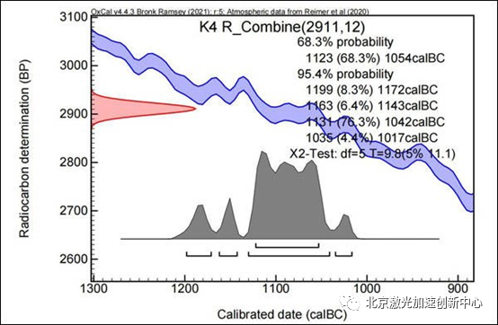 K4祭祀坑的碳14树轮校正日历年代分布图