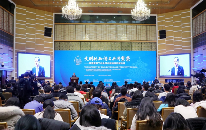 12月5日,北京论坛(2020)在英杰交流中心阳光厅开幕。论坛以“文明的和谐与共同繁荣——疫情重袭下的全球化新挑战和新机遇”为主题,邀请全球知名人士和学者聚焦后疫情时代的全球发展,通过线上线下结合的方式举行,并在人民日报、中国网、北京日报、澎湃新闻等多平台全网直播,为观众呈现了一场思想碰撞和智慧交融的云端会议。