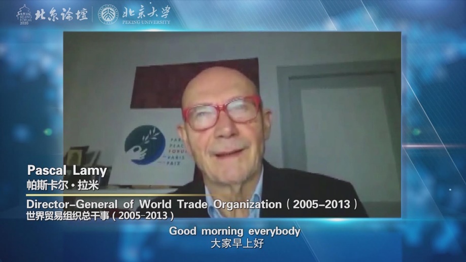 世界贸易组织前总干事、巴黎和平论坛主席、北京论坛高端顾问委员会委员帕斯卡尔·拉米在视频中指出,代表世界转型升级的全球化进程近年来不断受阻,新冠疫情的暴发导致局势进一步恶化,在卫生、经济和社会等方面给人类带来了更大的挑战。他认为,以中国为首的部分国家迅速从疫情中恢复对国际社会而言是一个积极的信号,因为中国有可能带动全球经济复苏。他希望各国同心协力,恢复国际多边关系,重振国际合作。