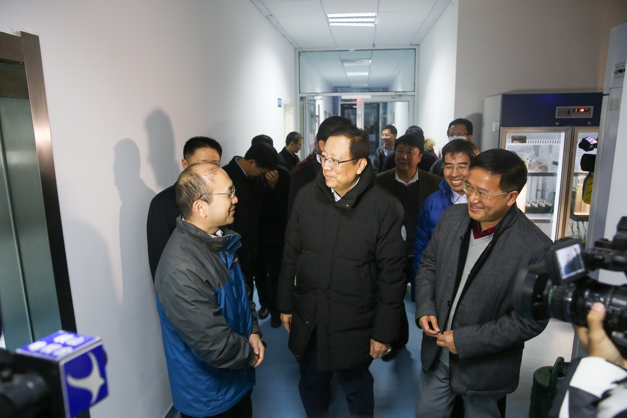 在潍坊期间,郝平一行到北京大学现代农业研究院考察调研,并与在此工作学习的师生亲切交流,鼓励他们迎难而上、勇于创新,力争早出成果、多出成果、出一流成果。一起考察的还有刘春明、邓兴旺、黄季焜、刘德英、彭宜本和何跃辉等北京大学现代农学院、现代农业研究院、生命科学学院的领导和专家学者。