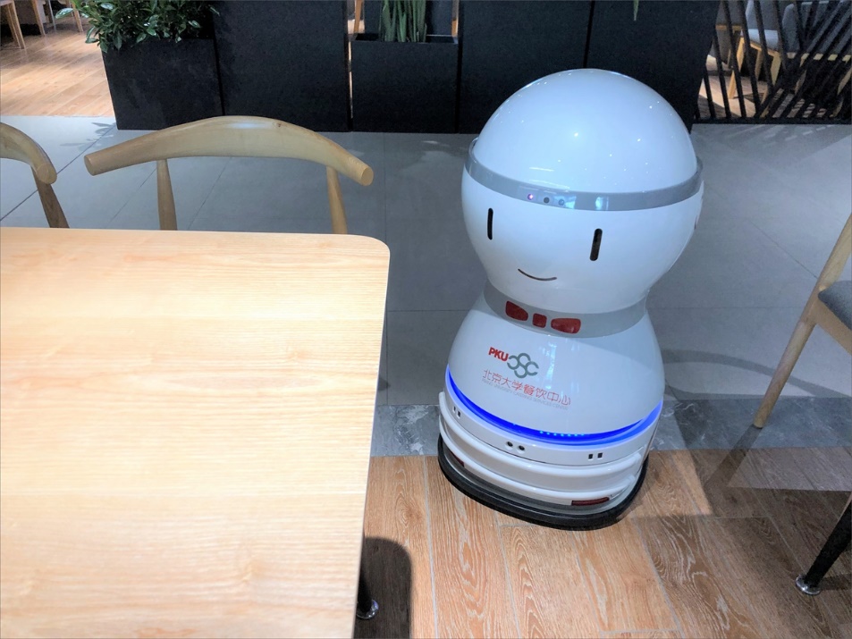 一进“家”门,两台机器人手擎“欢迎屏幕”,憨态可掬的样子引起师生驻足。特色美食、楼宇地图、校园食堂分布、厨师风采等信息都可以在屏幕上找到。机器人还会按客人指令,引导用餐者前往指定区域。此次家园食堂开发了三种共十余台机器人,除了设置在一层门口的导引机器人,还在三层、四层放置了送货机器人,在四层放置了送餐机器人。用餐师生只要在座位上扫码购买饮料或点餐,机器人就会将饮料和餐食送到座位。