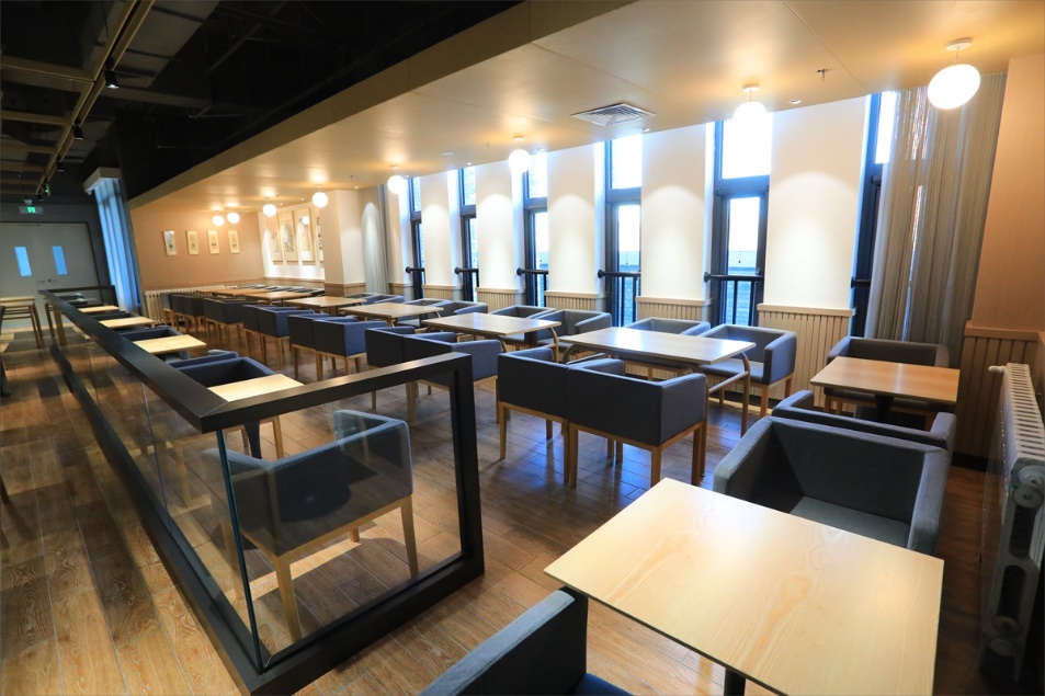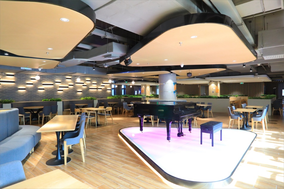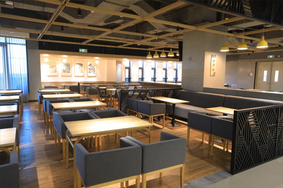 四层为慢节奏用餐风格的休闲餐厅,其中有小北面包、西式快餐、愉火锅等。小北面包房为师生提供品种丰富的面包和生日蛋糕定制等服务。西式快餐环境优雅,一台钢琴立在大厅中央,等待着师生一展身手。愉火锅则主打地道的重庆火锅,将成为师生聚会的又一个绝佳场所。水吧提供奶茶、果茶、鲜榨果汁等深受青年人喜爱的时下流行饮品。