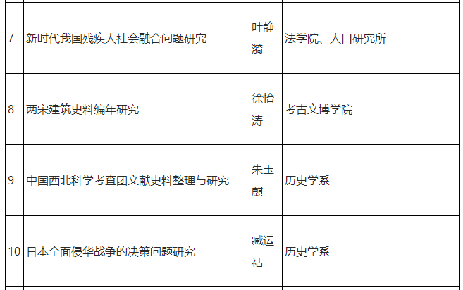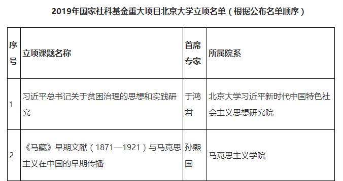 2019年国家社科基金重大项目北京大学立项名单(根据公布名单顺序)