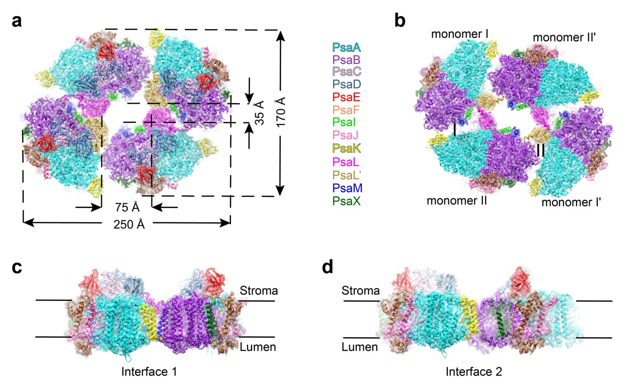 10月8日,北京大学生命科学学院赵进东院士课题组与高宁教授课题组,以及中国科学院大连化学物理研究所李国辉研究员研究组在Nature Plants 发表了题为“Structural and functional insights into the tetrameric photosystem I from heterocyst-forming cyanobacteria”的研究论文。他们利用冷冻电镜技术,解析了丝状蓝细菌中光系统I四聚体的超高分辨结构,通过分子动力学模拟,揭示了脂类在光系统I四聚体组装过程中的重要作用,并进一步结合生化和生理实验,探索了光系统I的寡聚化在环式电子传递和类囊体膜重排过程中的重要功能。