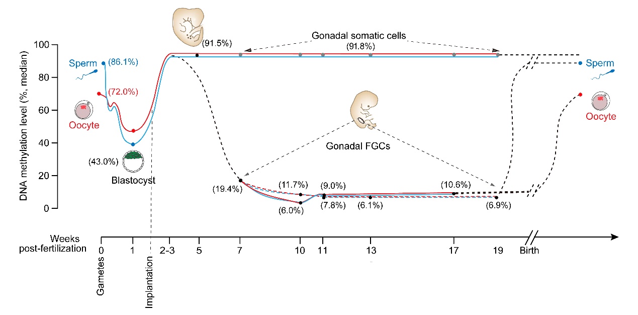 (图二)人类生殖系细胞DNA甲基化重编程过程