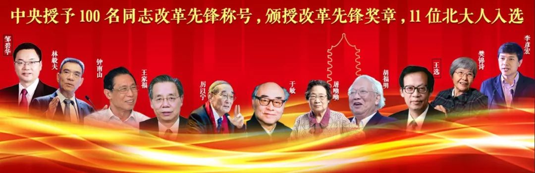 中华人民共和国成立70年以来,一代又一代北大人为国家建设和发展作出杰出贡献。在庆祝改革开放40周年大会上,党中央、国务院决定,授予于敏等100名同志改革先锋称号,颁授改革先锋奖章,其中有11位北大人。