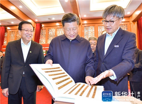 5月2日,中共中央总书记、国家主席、中央军委主席习近平来到北京大学考察。这是习近平在北京大学国际马克思主义文献中心察看馆藏马克思主义典籍。新华社记者李学仁摄
