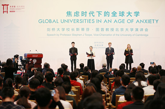 图普发表了题为“焦虑时代下的全球大学(Global universities in an age of anxiety)”的演讲。北大副校长田刚主持演讲会。