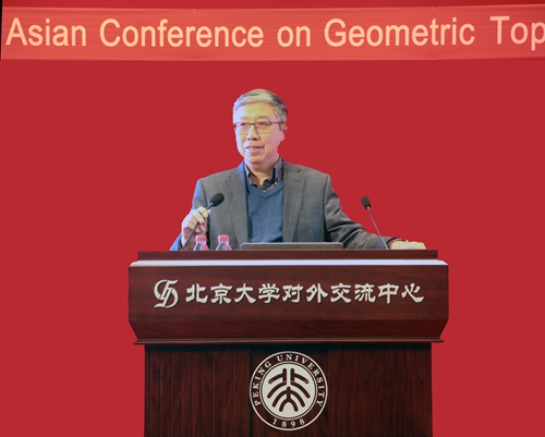 2019年1月21日,第十四届东亚几何拓扑会议(14th East Asian Conference on Geometric Topology)开幕式在北京大学英杰交流中心举行,北京大学副校长田刚院士,北大数学科学学院姜伯驹院士、王诗宬院士,大阪市立大学河内明夫教授、镰田圣一教授,东京大学数理科学研究科长河野俊丈教授,韩国高等科学技术院秦教泽教授,浦项工科大学车载春教授,以及来自中日韩三国的近150位专家学者出席。开幕式由北大数学学院王家军研究员主持。