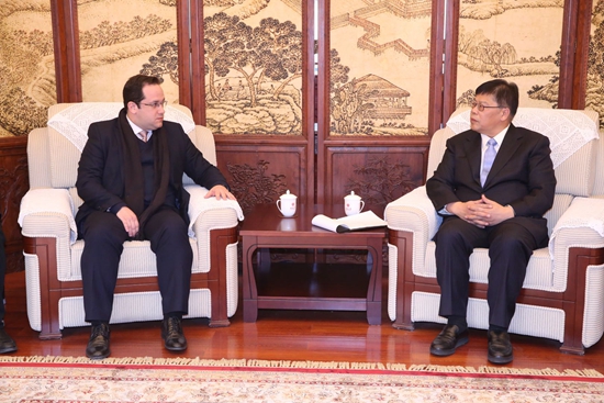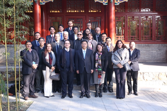 11月22日下午,巴西教育部副部长恩里克•萨尔托利•德•阿尔梅达•普拉多(Henrique Sartori de Almeida Prado)率巴西高校代表团20余人来北大访问,其中包括巴西高等教育人员促进会、圣保罗州立大学、巴西科茵布拉联邦大学等9所机构。北京大学党委书记、校务委员会主任邱水平在临湖轩会见了来宾一行。北京大学拉美研究中心主任董经胜,外国语学院副院长吴杰伟、西葡语系主任范晔,国际合作部部长夏红卫、副部长周曼丽等陪同会见。