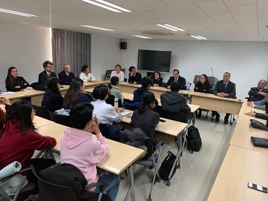 随后,萨尔托利一行来到外国语学院新楼,与葡语专业的师生进行交流,萨尔托利欢迎北大同学有机会去巴西学习。