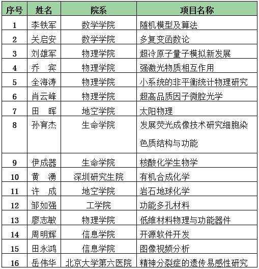 2018年北京大学“杰青”获得者名单(按照基金委各科学部排序)