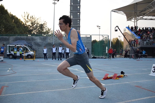 来自台湾的陈泓霖同学就读于北京大学化学系研究生二年级,他在本次比赛中斩获三金一铜,成绩分别是100m11秒49,200m23秒5,4×100m接力44秒55,4×400m接力季军的成绩。在4×400m最后一棒的角逐中,他更是与同组运动员展开了激烈的竞争,吸引了全场的目光。对于此次参赛感受,他说:“2018首都高校田径赛,第一次一口气拿了3金1铜,谢谢队友推着我拿了第4个奖牌,由于身体原因,100m、200m成绩都退步了好多,但是能跟大家一起比赛真的很开心,而且还穿着好看又免费的队服,希望明年能取得更好的成绩。”