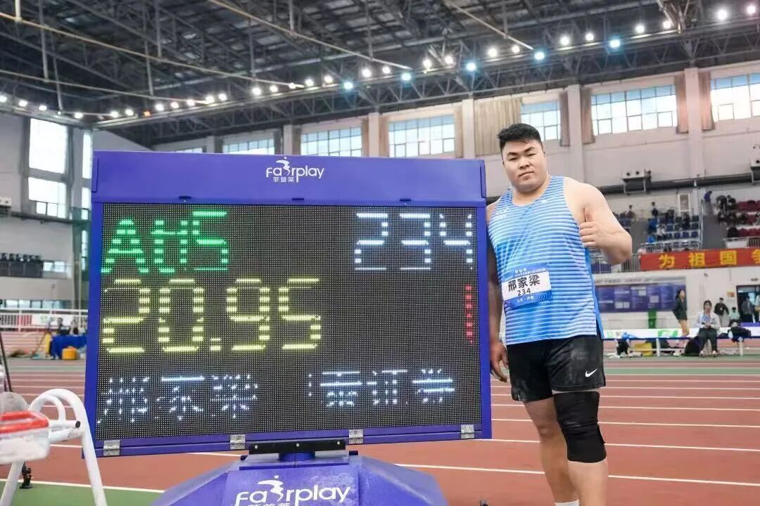 第五投更是投出20.95米的突破性成绩