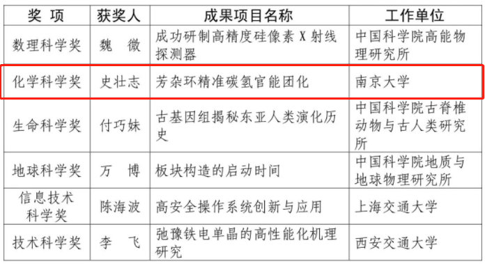 南京大学教授、北京大学药学院2011届博士校友史壮志完成的“芳杂环精准碳氢官能团化”项目被授予陈嘉庚青年科学奖化学科学奖。