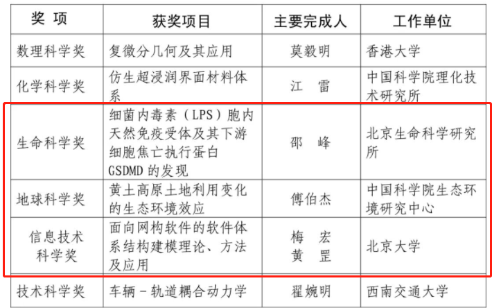 中国科学院院士,北京生命科学研究所学术副所长、资深研究员,北京大学技术物理系1996届本科校友邵峰完成的“细菌内毒素(LPS)胞内天然免疫受体及其下游细胞焦亡执行蛋白GSDMD的发现”项目被授予陈嘉庚科学奖生命科学奖。