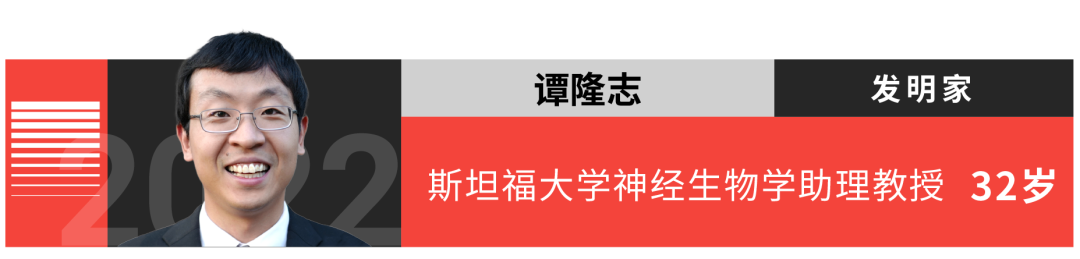谭隆志,2008年就读于北京大学,一年后转学并于2012年获麻省理工学院(MIT)物理、生物双学位,2018年获哈佛大学系统生物学博士学位,现任斯坦福大学神经生物学助理教授。2019年在斯坦福大学开展博士后研究。
