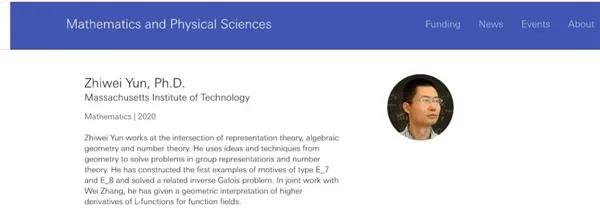 本年度共评选出15位西蒙斯学者,恽之玮成为数学领域4位获奖者之一,也是唯一一位华人获奖者。