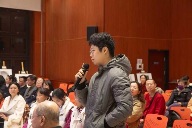 在听众互动环节,有人询问“草叶”意象的内涵,李印白解释道,草代表生命、平等和那些微不足道的人与事,正如惠特曼所言,小草能从头盖骨的缝隙中钻出,象征着渺小中蕴含的巨大力量。对外汉语教育学院的同学提出关于黑白摄影的思考,施坚补充解释道:“艺术的格调靠减法来提升,黑白摄影减少了色彩,因而更为难得。”法学专业的学生则从惠特曼的平等精神出发,探讨了当代社会的精英主义问题,李印白坦诚回应,鼓励大家追求内心的光明。