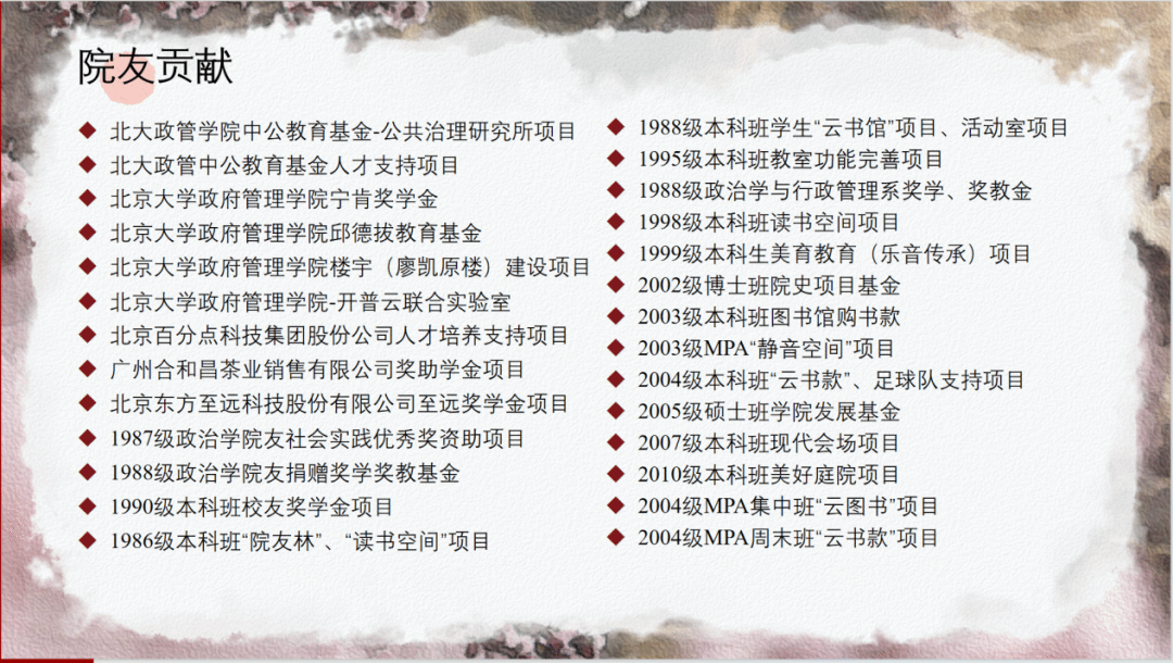 近年来政府管理学院院友捐赠统计(部分)