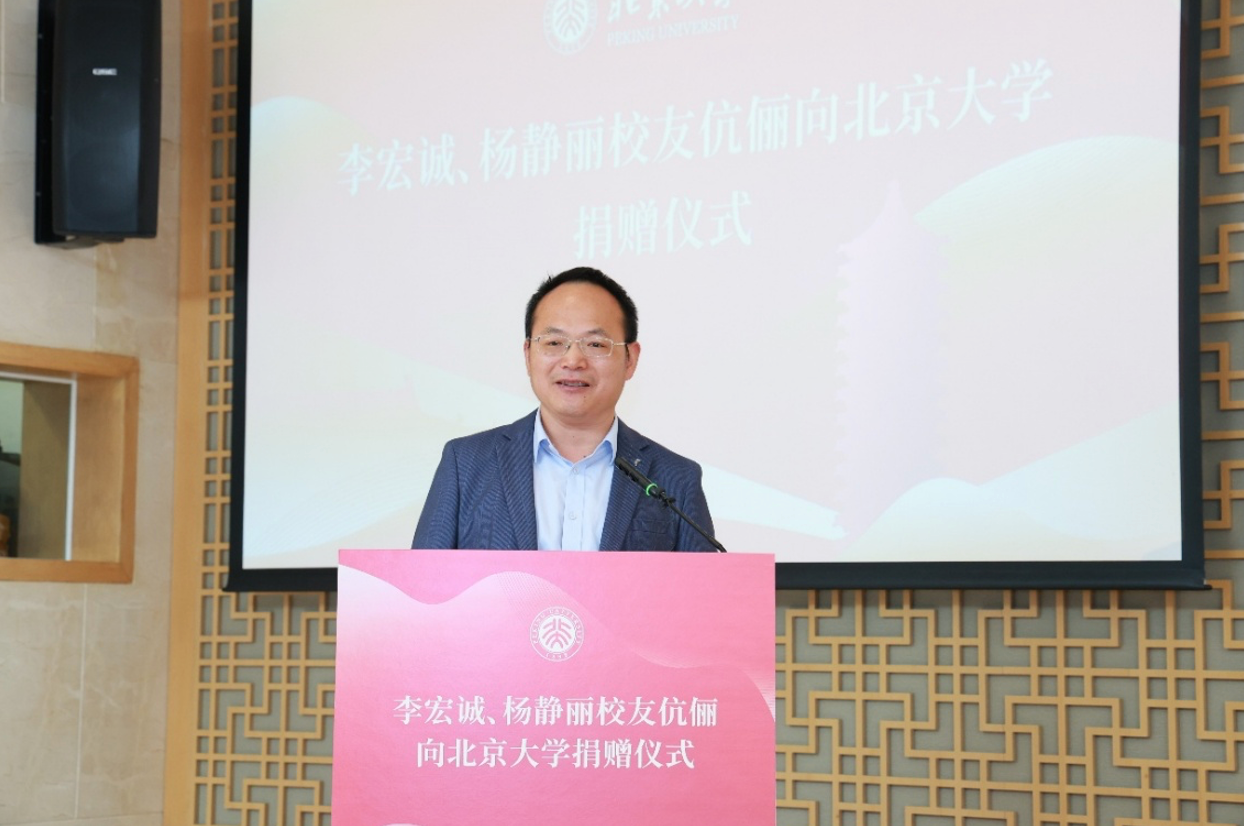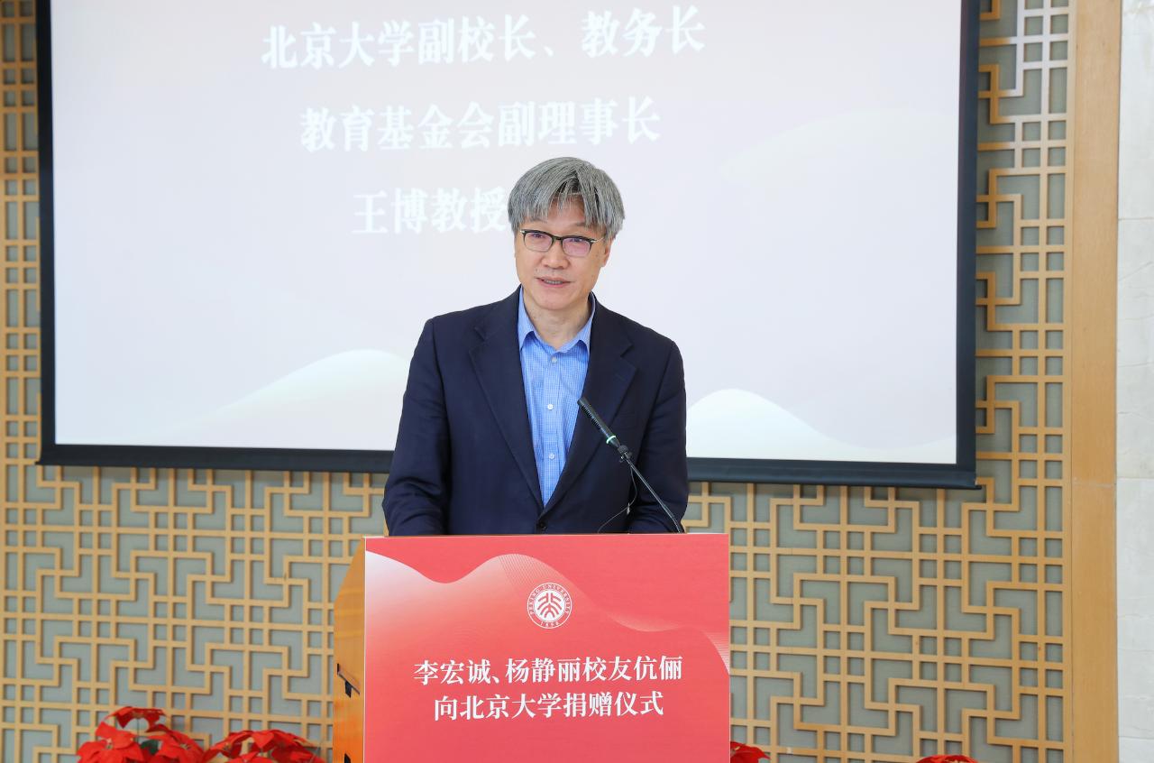 王博对李宏诚、杨静丽校友伉俪对北大的持续关心与支持表示感谢。他指出,两位校友对母校的深切情感和学院师生同窗间的深厚情谊令人非常感动,校友的成长和创业历程更是“做自己,在一起;在一起,成为更好的自己”的生动写照。他表示,校友的成就是母校最大的骄傲,两位校友通过自身努力回馈母校,这是学校哺育人才成果的重要体现,更是对北大师生的精神激励。