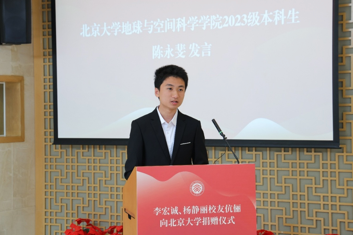李宏诚分享了自己的燕园故事和捐赠支持地空学院的初心,希望通过此次捐资勉励学院师生将地空人的精神薪火相传。他表示,地球科学与人类未来息息相关,希望这笔捐赠能够成为播下的一颗种子,激励青年学子更好地解读地球密码、探索宇宙奥秘,成长为国家的栋梁之材。