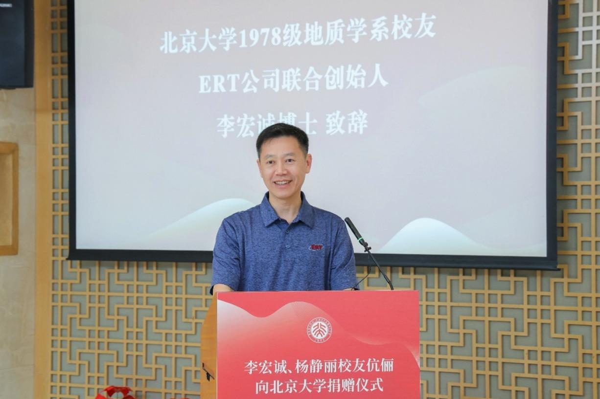 李宏诚、杨静丽校友伉俪,北京大学副校长、教务长、教育基金会副理事长、校友会常务副会长王博,地球与空间科学学院院长张立飞、党委副书记陈云超、教授马蔼乃、韩宝福、赵永红,校友工作办公室副主任赵文莉,北京大学教育基金会副秘书长胡俊、赵琳和地球与空间科学学院师生代表等共同出席。北京大学地球与空间科学学院党委副书记、地质博物馆馆长江大勇主持仪式。