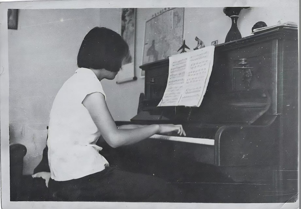 裴文中长女裴桂用葛利普所赠钢琴练习弹奏