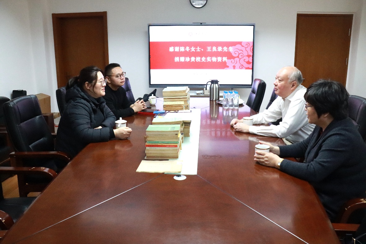 陈冬、王良录与捐赠的校史实物资料