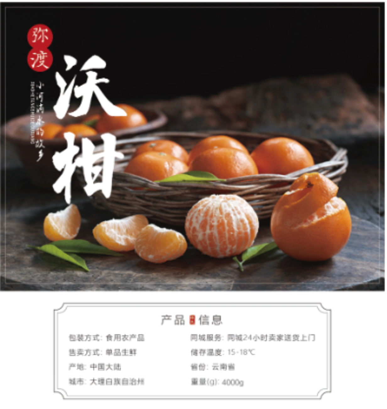 弥渡沃柑介绍:弥渡县地处云南省大理白族自治州南部山区高原,日照时间长,昼夜温差大,适合柑橘生长。今年沃柑尤其产量高、品质优良,果实水分60%以上,甜度达到12-16°,黄金酸甜比,瓣瓣爽口。