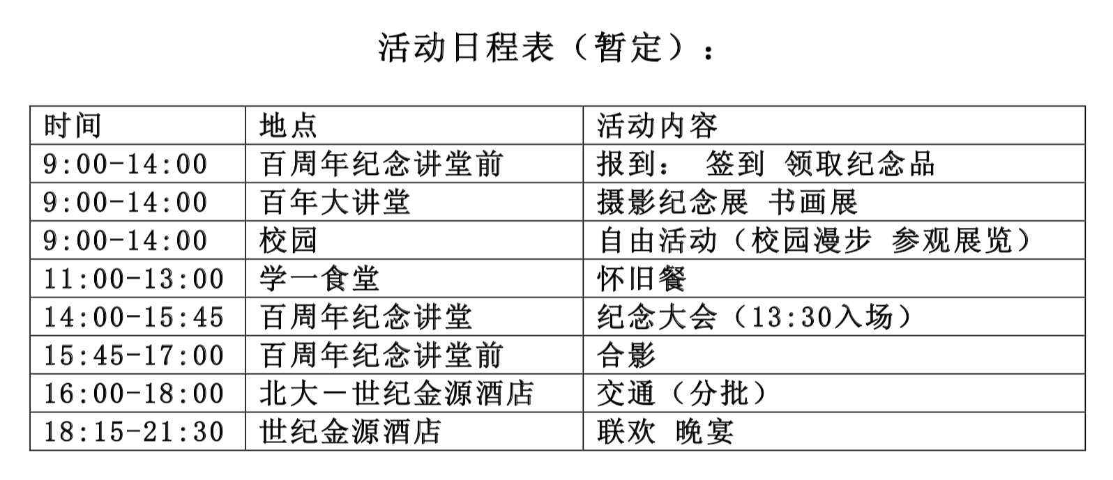 活动安排(暂定, 详情请留意《燕园79缘》公众号中的最新通知):