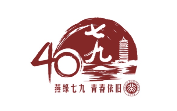 纪念标志设计说明:以北大最著名的博雅塔和未名湖为背景,朱红色的笔刷将未名湖的氛围勾勒出来,体现一种圆融的感觉,预祝同学聚会的圆满。”七九”和40融合在未名湖里,使弧形设计风格更为融合;“燕缘七九,青春依旧”的主题语与北大校徽并列对应,表现了79级学子对母校浓浓的情谊。