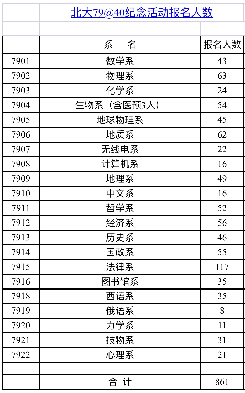 在过去的十个月中,同学们都在为四十年后的久别重逢激动着努力着。大家纷纷用文字,影像,书画缅怀我们的青春岁月,共叙我们的同窗情缘。今天,2019.5.16 离我们 2019.8.24 的燕园之约只差100天了,截止目前已有861位同学整装待发,不能赴约的同学也在天南地北关注着这一激动人心的时刻。
